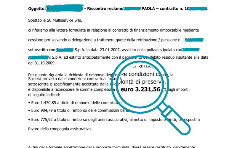 Paola si è rivolta a noi per ottenere un rimborso sulla sua cessione del quinto, estinta anticipatamente. Attraverso il nostro servizio di Rimborso della Cessione del Quinto, è stata riconosciuta a Paola la restituzione della somma di 3.231€.
